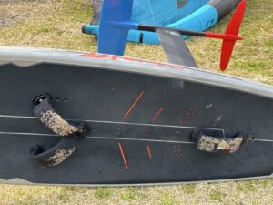 マスト位置を少しだけ前目にして乗ってみると、浮きが強くFストラップ位置が最前列にも関わらず窮屈なポジションに感じることからストラップの前に足を出して乗ってみることにチャレンジしました