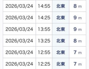 今日は順調に12時半頃から吹いて来たので満足して勤務に向かえました