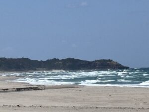 到着すると北気のショアブレイクが多数見え良い波ではないようですが乗れそうなので思案していました